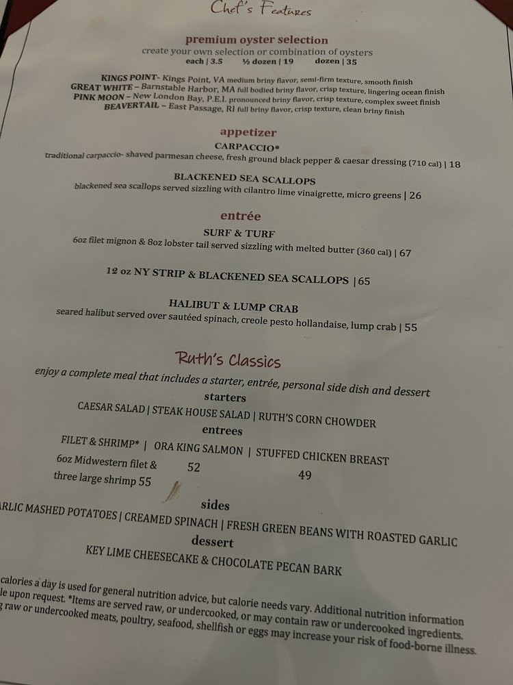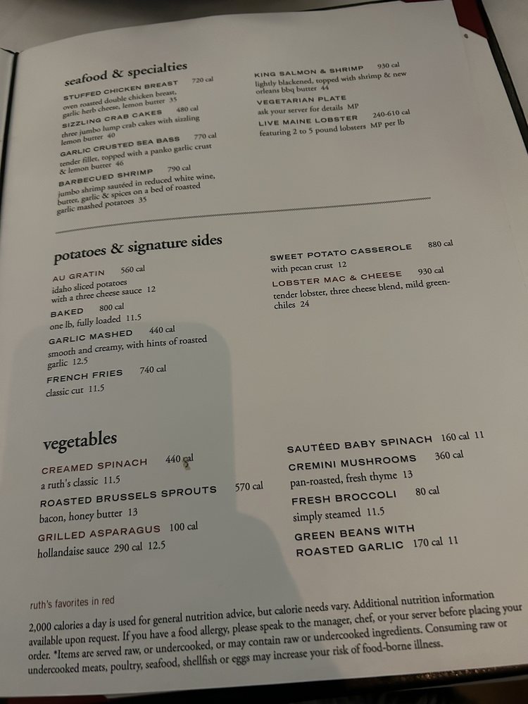 Ruth's Chris Steakhouse, located on 1280 Hwy 315 in Wilkes-Barre, PA, is a classy and upscale dining experience perfect for dinner or special occasions. The menu offers a variety of sides, appetizers, salads, and soups. Highlights include the Baby Spinach sautéed with butter, the Barbecued Shrimp sautéed New Orleans style, and the Harvest Salad with roasted corn and goat cheese. The restaurant also caters to vegetarians with options like the Broccoli au Gratin in cheese sauce and the Creamed Spinach in New Orleans style cream sauce. The menu reflects a mix of traditional flavors with a modern twist, creating a truly satisfying dining experience. With impeccable service and a range of amenities like private dining and a full bar, Ruth's Chris Steakhouse is a must-visit destination for steak lovers and food enthusiasts alike.